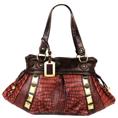 !: Brand new Schandra Double Handle Faux Croc Shoulder Bag with Studs (Coffee) Order Now
